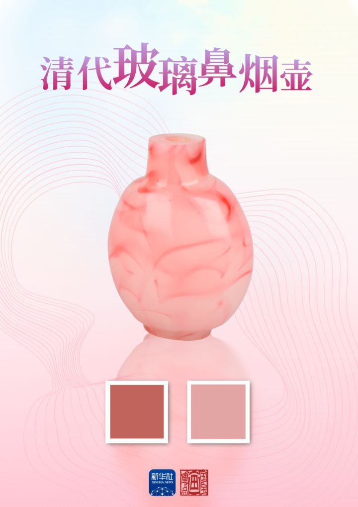 鼻烟壶流行于清代东西方文化交汇之下。这件清代玻璃鼻烟壶,红白相间,色泽润雅,体现出顺色施艺的精妙工艺。