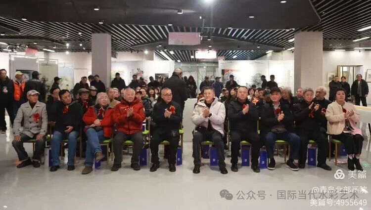 展览还特别设置了“艺海泛舟”美术青岛专访展区,对2025年由青岛市美协指导,青岛北部画院主办的八期专访的老一辈艺术家刘世骏先生、张白波先生、邱振亮先生、刘文泉先生、姜振萍先生、蓝立克先生、袁玉堂先生及孙增弟先生的作品进行主题式的集中展示。青岛北部画院公众号进行了全程直播,在线观看的近千人。