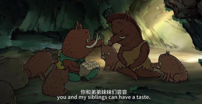 全片温情之处,是小猪妖和母亲的对话。妈妈给小猪妖准备了葫芦带在身边,“就是想让你多喝水别上火。”第一时间发现小猪妖秃了,便关心道:“你得学会照顾自己,别太累了。”