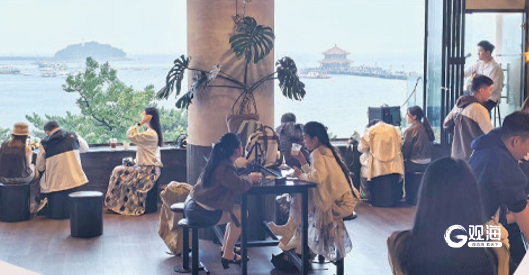 透过壹·咖啡的窗户可以远眺栈桥景区。