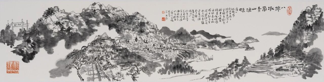 国画 八仙墩旁青山渔村 136cm×34cm 2022年