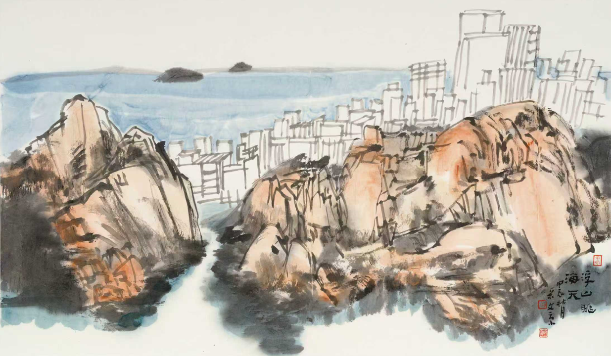 国画 浮山望海 68cm×34cm 2024年