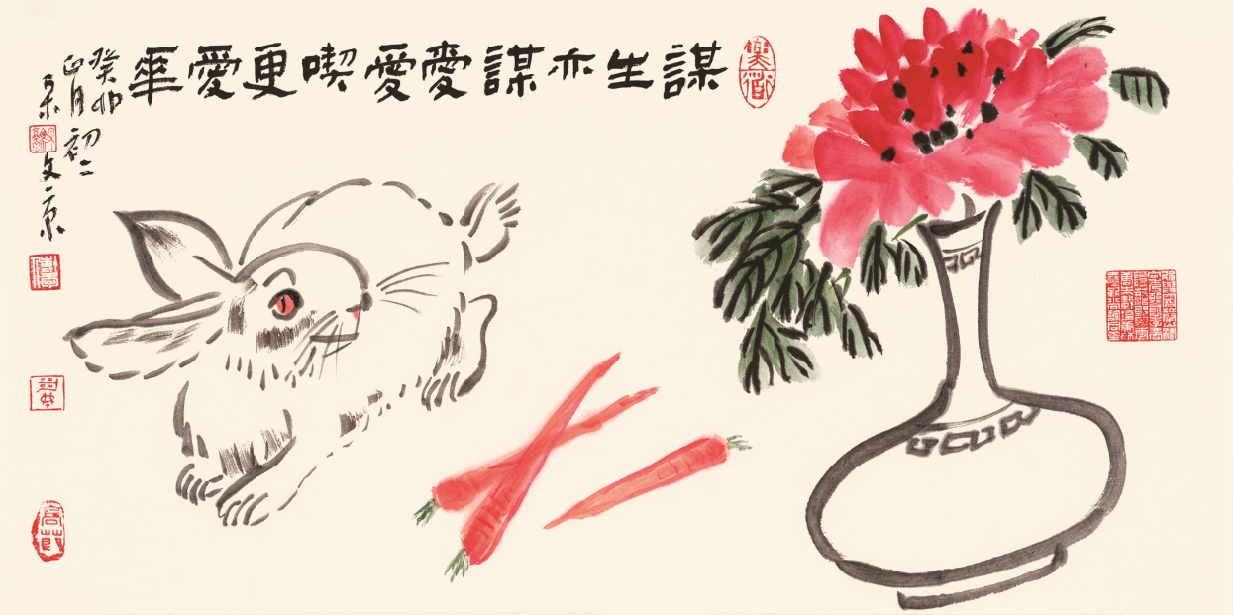 国画 谋生亦谋爱 爱吃更爱花 68cm×34cm 2023年