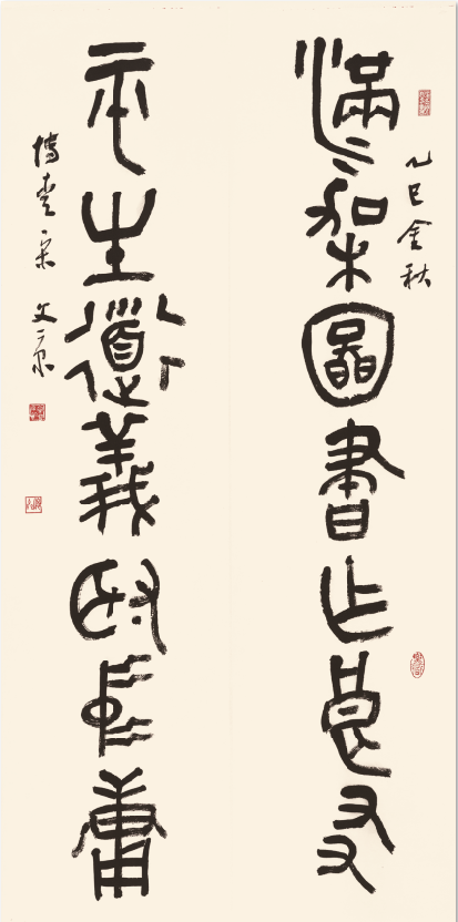 篆书联 满架图书作良友 平生道义取中庸 34cm×136cm×2 2025年