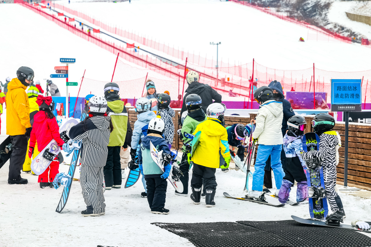 作为六盘水市中心城区的钟山区,将梅花山滑雪场升级为“南国雪乡”冰雪王国,以“冰雪+文化+研学+服务”融合模式打造独特体验。80栋覆雪木屋在晨雾炊烟中若隐若现,红灯笼与星空烟花相映成趣,东北秧歌快闪与“冰与火之歌”非遗展演轮番上演,让游客在贵州也能沉浸于浓郁的北国风情。“熊熊之家”童话主题区内,真人NPC(非玩家角色)互动与趣味任务带来沉浸式体验;“说出‘醉美多彩贵州,我们这里是梅花山滑雪场’即赠洋芋粑”的宠粉活动,更以南方特有的热情温暖了整个雪场。面向青少年,景区不仅准备了10万张“冰雪运动进校园体验券”和1000个免费教学名额,还引入企鹅、白狐等极地动物,结合科普课堂,让孩子们化身“雪地探险家”,在玩乐中探索自然奥秘。