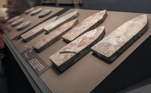 琅琊台顶出土的秦代“花斑石”构件(下图),与武王墩楚考烈王墓出土的“花斑石”圭、璧(上图)质地极其相似。