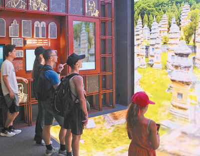 游客在少林寺数字档案展厅参观。 |