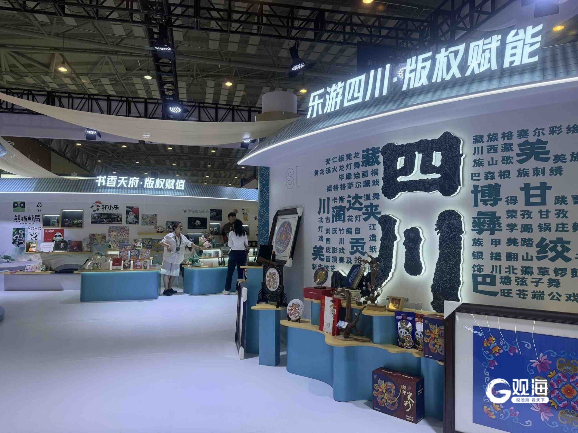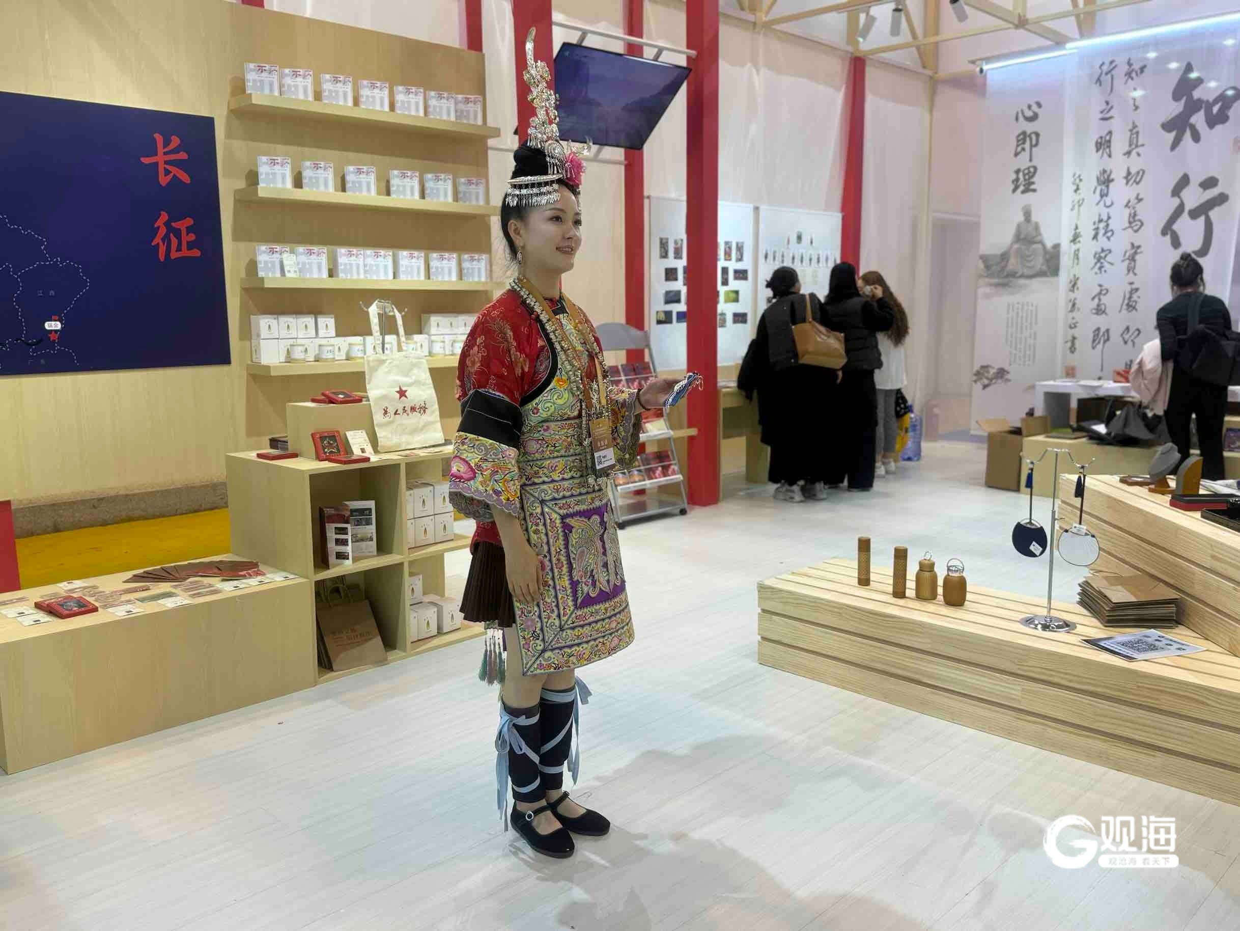 云南展区陈列的展品类型多样,从建水紫陶到热带雨林文创商品,从民族剪纸到茶咖创意包装,涵盖非遗、文创、出版物等领域,兼具文化底蕴与版权价值,参展工作人员还从云南空运过来特色鲜花,现场赠送观众。古老鱼皮邂逅现代科技,民族技艺拥抱国际舞台,来自黑龙江省佳木斯市的赫哲族鱼皮艺术作品惊艳亮相,以实物展陈、技艺演示、现场路演三重形式,将这支“渔猎民族”的文化瑰宝推向世界,更展现出非遗保护与版权建设深度融合的崭新成果。去甘肃展区探宝,可以看中国人的心灵读本《读者》杂志,赏全球首部洞窟式体验剧《乐动敦煌》,寻莫高窟里的千年壁画,玩中国西部首部3D武侠游戏《紫塞秋风》,买“马踏飞燕”文创玩偶……版博会现场,一个个展区纵横古今,“版权+科技”“版权+创意”“版权+非遗”“文化+文旅”等新路径,让版博会的沉浸式体验更加丰富多彩,也让版权产业发展活力更加强劲。