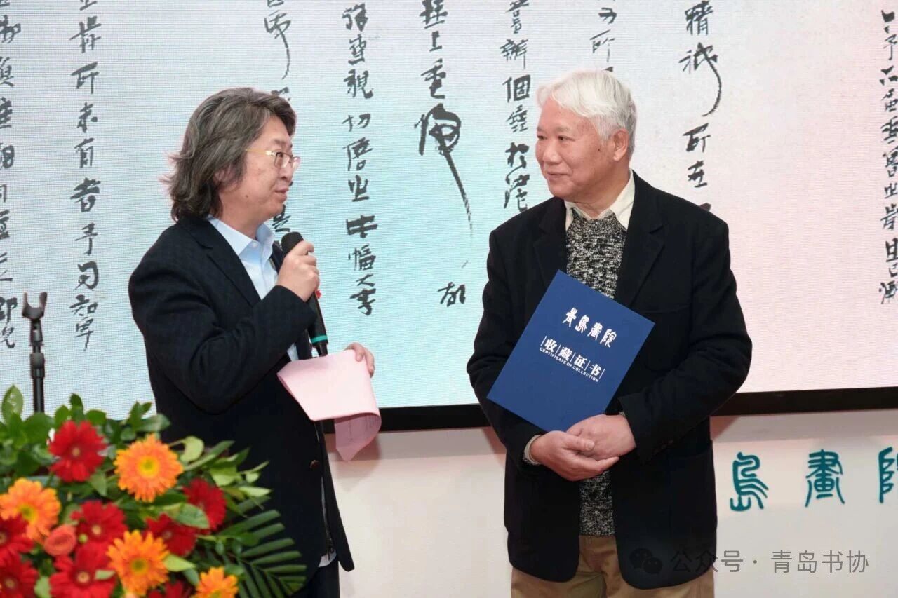 刘一闻先生向青岛画院捐赠书法作品,青岛画院院长郭强接收捐赠并颁发证书