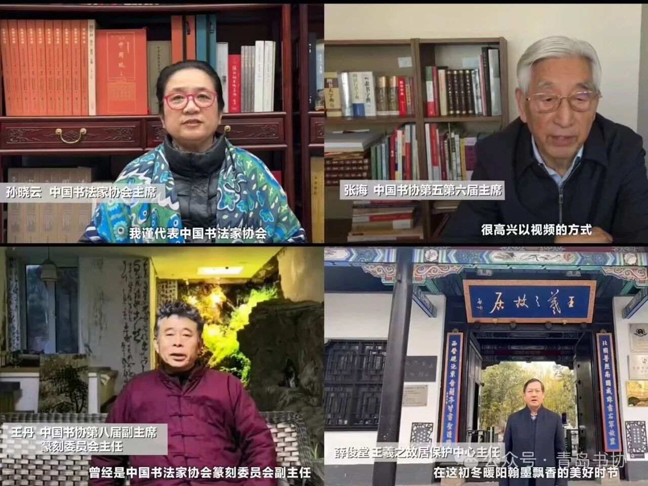 中国书法家协会主席孙晓云,中国书法家协会第五、六届主席张海,中国书法家协会副主席、篆刻委员会主任王丹,王羲之故居保护中心主任薛俊堂视频贺词