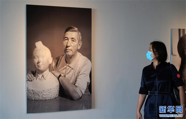 2021年8月5日,观众观看展出的丁丁与埃尔热的合影。 当日,上海当代艺术博物馆与比利时埃尔热博物馆联合举办的丁丁主题展“丁丁与埃尔热”在上海开幕。此次展览不仅呈现了《丁丁历险记》系列连环画的珍贵历史原作,还展出了“丁丁之父”——比利时漫画家埃尔热的创作手稿、笔记、绘画以及个人的艺术品收藏等。 新华社记者 任珑 摄
