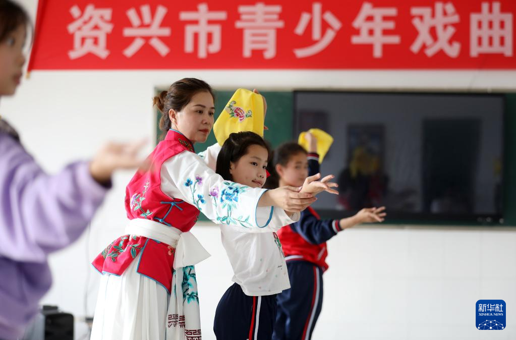 近年来,湖南省资兴市积极推进传统戏曲进校园,通过设立培训基地、兴趣班、“第二课堂”等形式,邀请专业戏曲老师走进校园,为学生进行京剧、花鼓戏等教学辅导,让孩子们感受非遗文化的魅力。