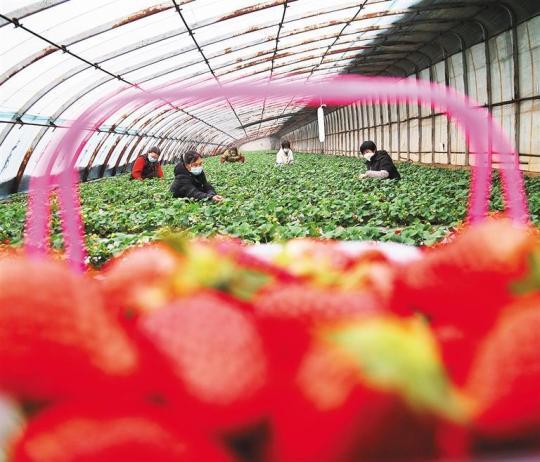 ③1月12日,河北省迁安市杨各庄镇草莓园,前来采摘草莓的游客络绎不绝,“采摘热”带动乡村旅游升温。