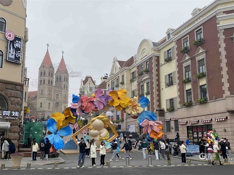 历史城区内,在海誓山盟广场,游客与街头艺术装置合影留念,在传统与现代的不同景致中充分体验岛城风情;在银鱼巷,咖啡馆、西餐厅、买手店是年轻人的聚集地,美食美味美景让假日更加轻松愉快;大鲍岛街区,国风茶铺、美术展览等,可怀旧、可新潮,留存一段别样的假日记忆。