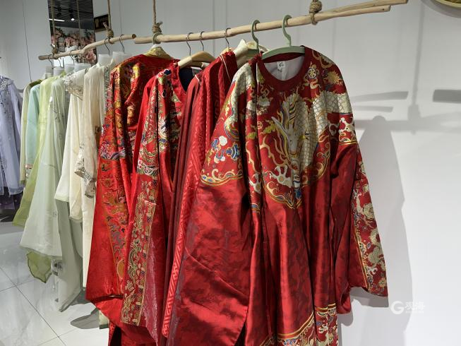 如今,颜落经营的这家汉服店内麻雀虽小,五脏俱全,既售卖着汉服、JK、Lolita、汉服饰品,也拥有多个古风摄影空间、妆造间。“汉服已经火了十几年,很多当初的汉服爱好者已经结婚生子,一些家庭会在过年、中秋节等传统节日或者拍全家福的时候集体穿汉服。现在,店里的儿童汉服和婚礼汉服颇受消费者喜爱,有的外地新娘在网上种草后会特地前来店里试衣。”店员告诉记者。