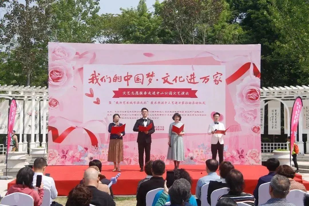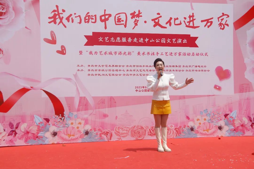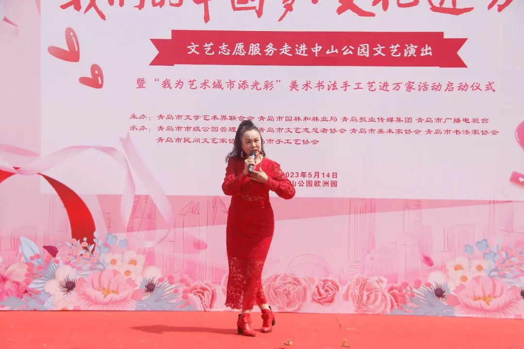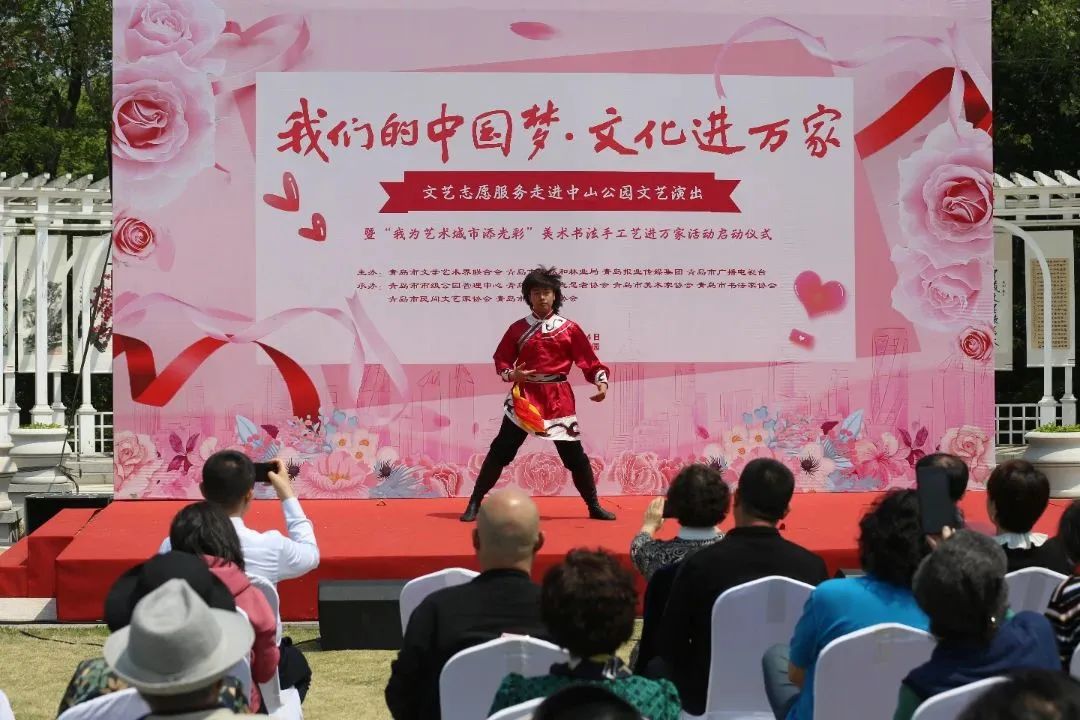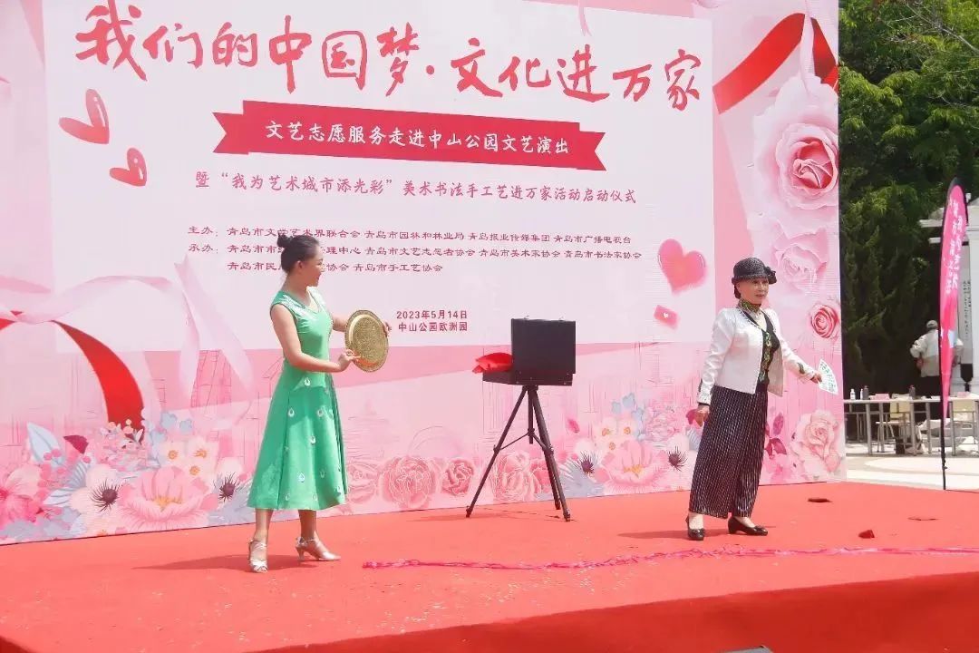 在第十个中国文艺志愿者服务日即将到来之际,为贯彻“到人民中去”的服务理念,弘扬“奉献、友爱、互助、进步”的志愿精神,助力艺术城市建设,5月14日上午,由中共青岛市委宣传部、青岛市政协文化文史和学习委员会指导,青岛市文联、青岛市园林和林业局、青岛报业传媒集团、青岛市广播电视台联合主办的“我们的中国梦”——文化进万家文艺志愿服务走进中山公园文艺演出暨“我为艺术城市添光彩”美术书法手工艺进万家活动启动仪式,在美丽的中山公园欧洲花园隆重举办,拉开了2023年“5.23”文艺志愿服务活动和“我为艺术城市添光彩”系列评选活动的序幕。