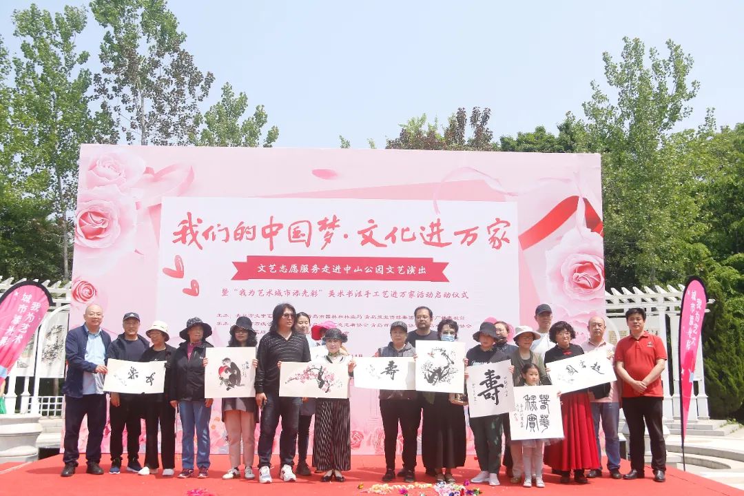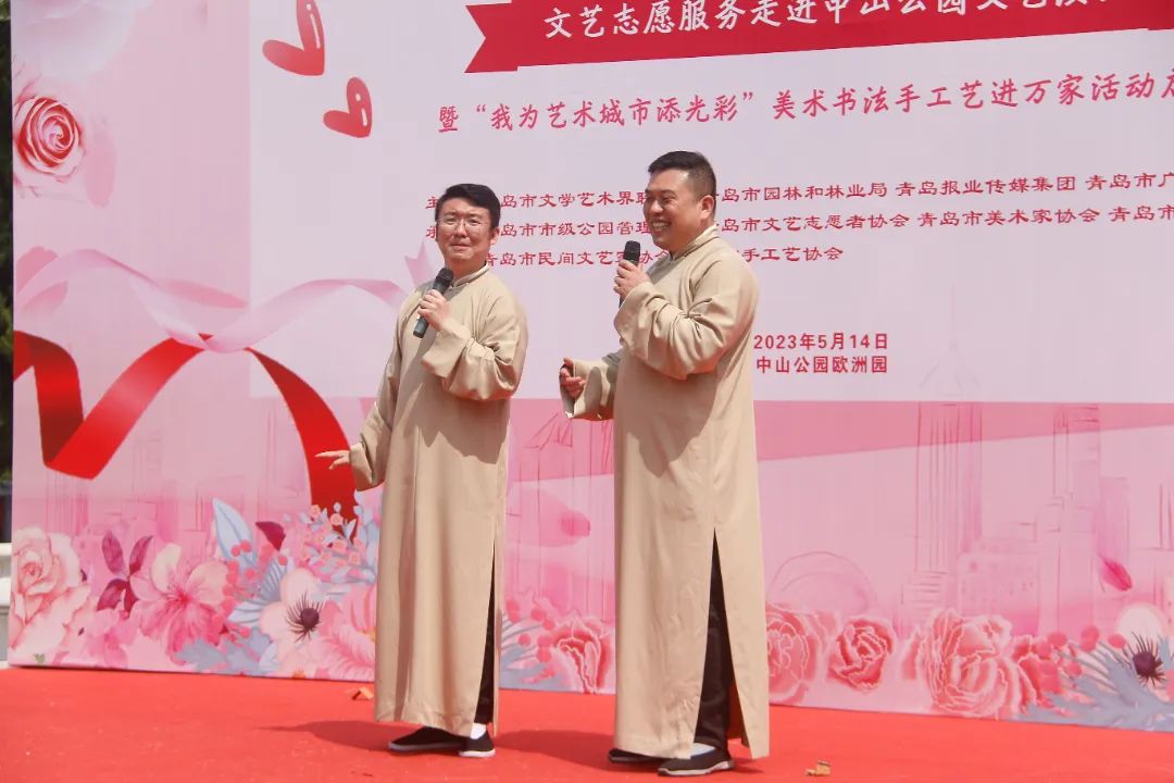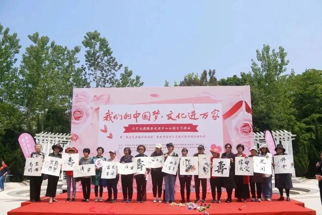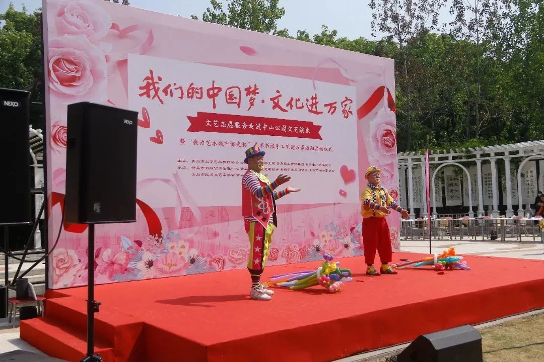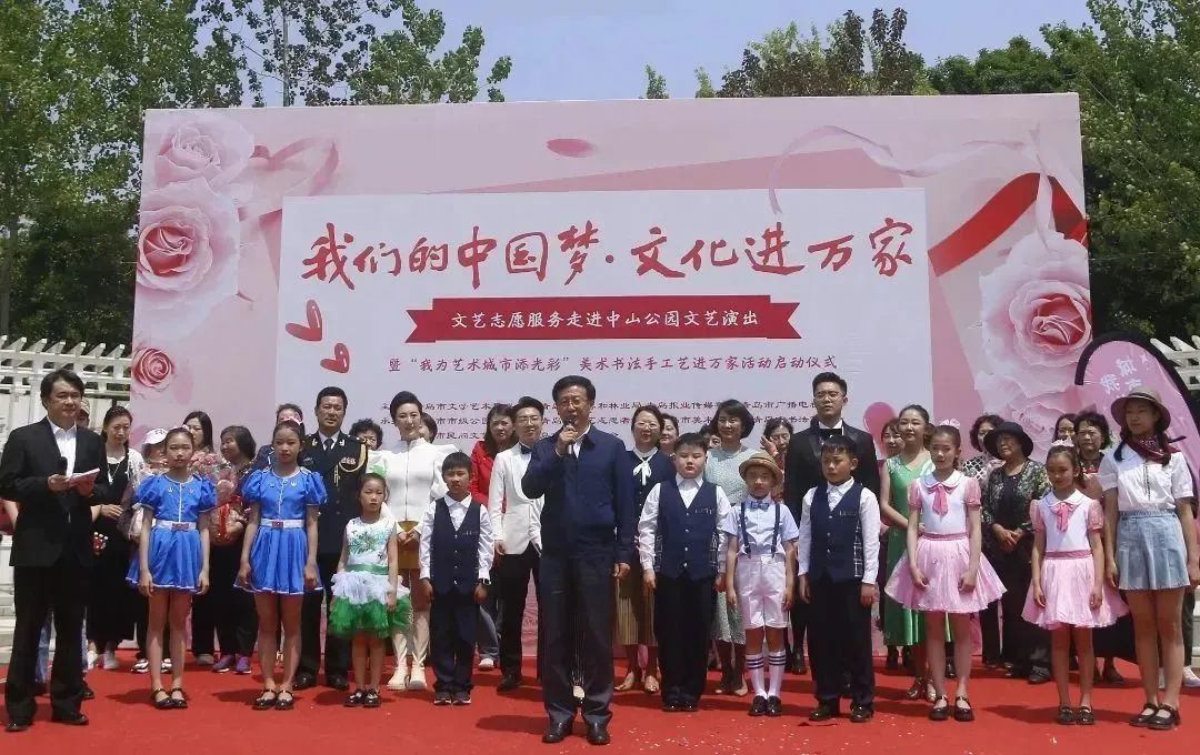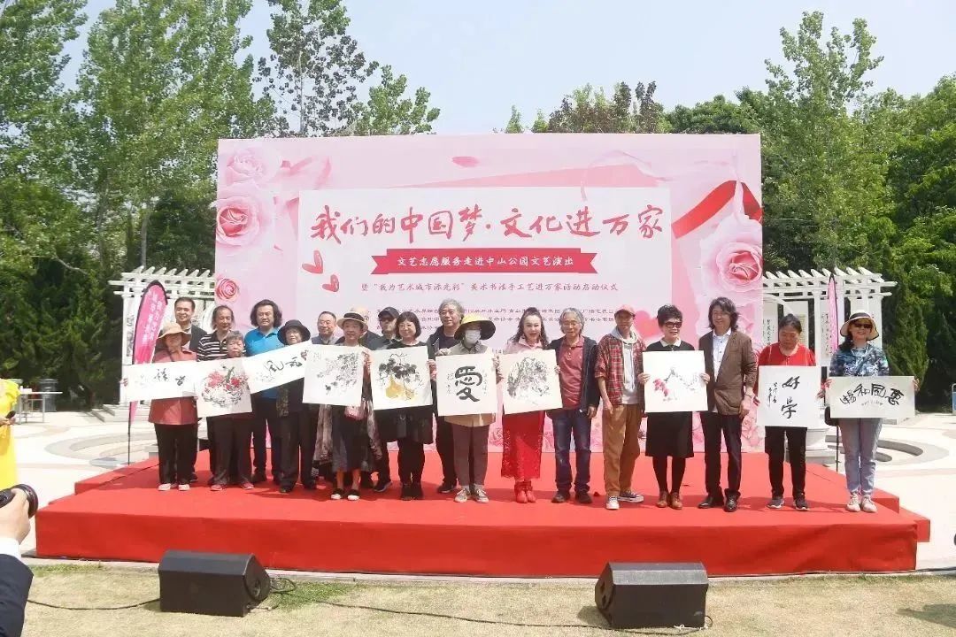 在第十个中国文艺志愿者服务日即将到来之际,为贯彻“到人民中去”的服务理念,弘扬“奉献、友爱、互助、进步”的志愿精神,助力艺术城市建设,5月14日上午,由中共青岛市委宣传部、青岛市政协文化文史和学习委员会指导,青岛市文联、青岛市园林和林业局、青岛报业传媒集团、青岛市广播电视台联合主办的“我们的中国梦”——文化进万家文艺志愿服务走进中山公园文艺演出暨“我为艺术城市添光彩”美术书法手工艺进万家活动启动仪式,在美丽的中山公园欧洲花园隆重举办,拉开了2023年“5.23”文艺志愿服务活动和“我为艺术城市添光彩”系列评选活动的序幕。