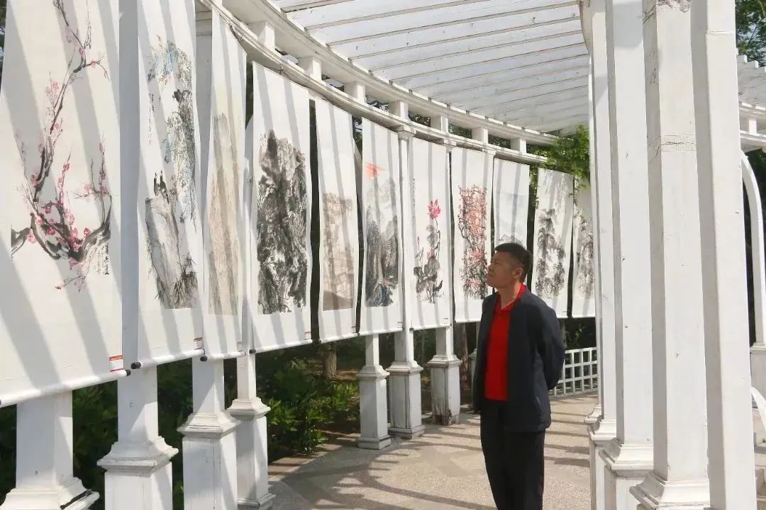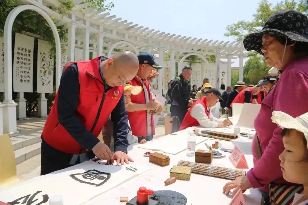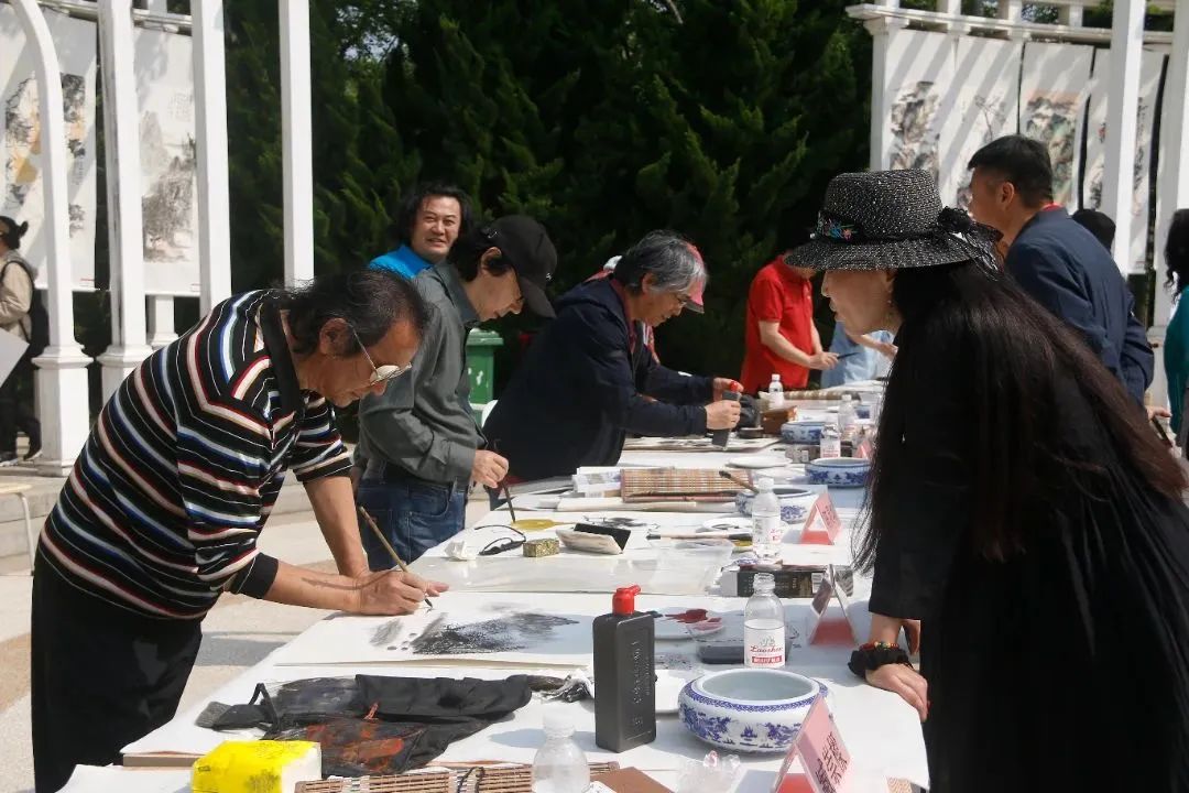 现场举办了“丹青满园”书画展,展出由岛城书画名家创作的60幅书画作品,20余位书画家挥毫泼墨开展了“艺心为民”书画笔会,作品全部奉献给游客和市民