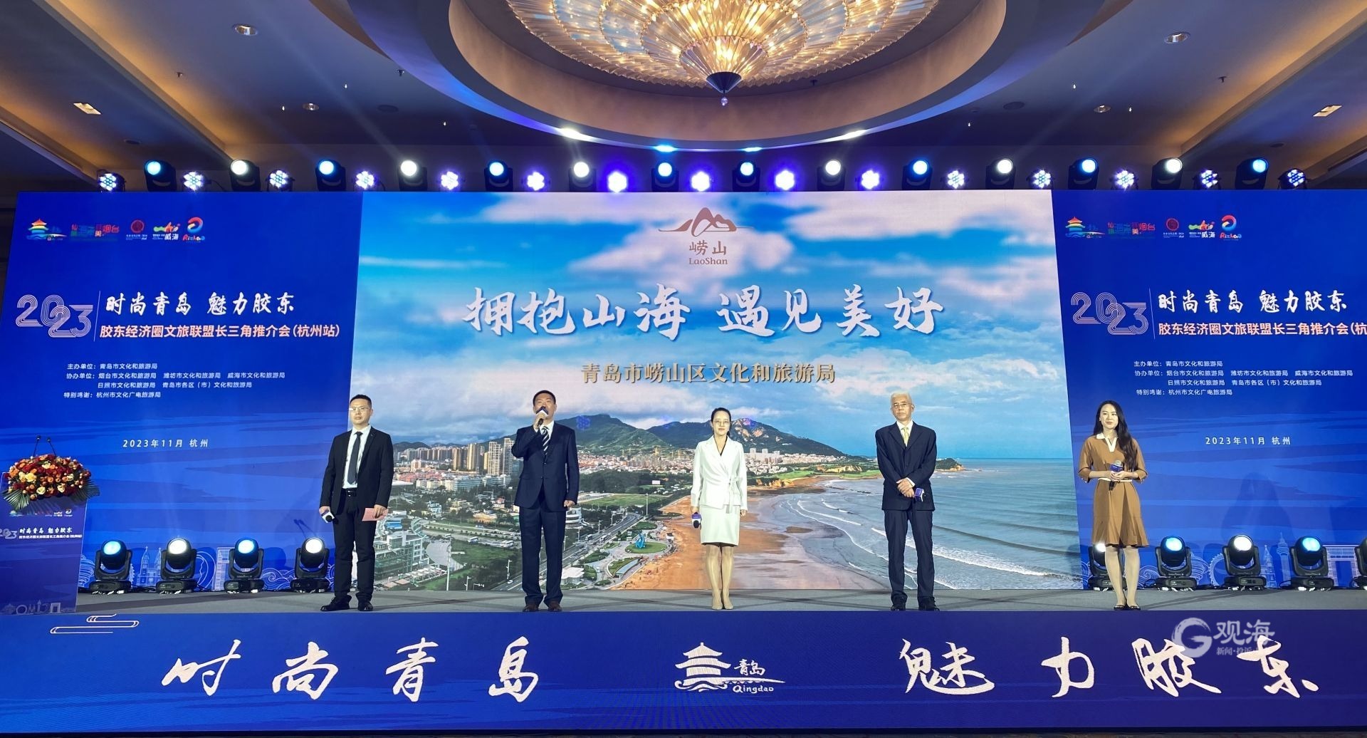 在杭州,青岛市崂山风景名胜区管理局、青岛环海湾投资发展集团、港中旅(青岛)海泉湾度假区、青岛黄岛发展(集团)有限公司、上合文旅产业有限公司登台推介,在西子湖畔的杭州湖滨路步行街,杭州市民和来往游客纷纷驻足,了解来自“时尚青岛,魅力胶东”的旖旎风光。