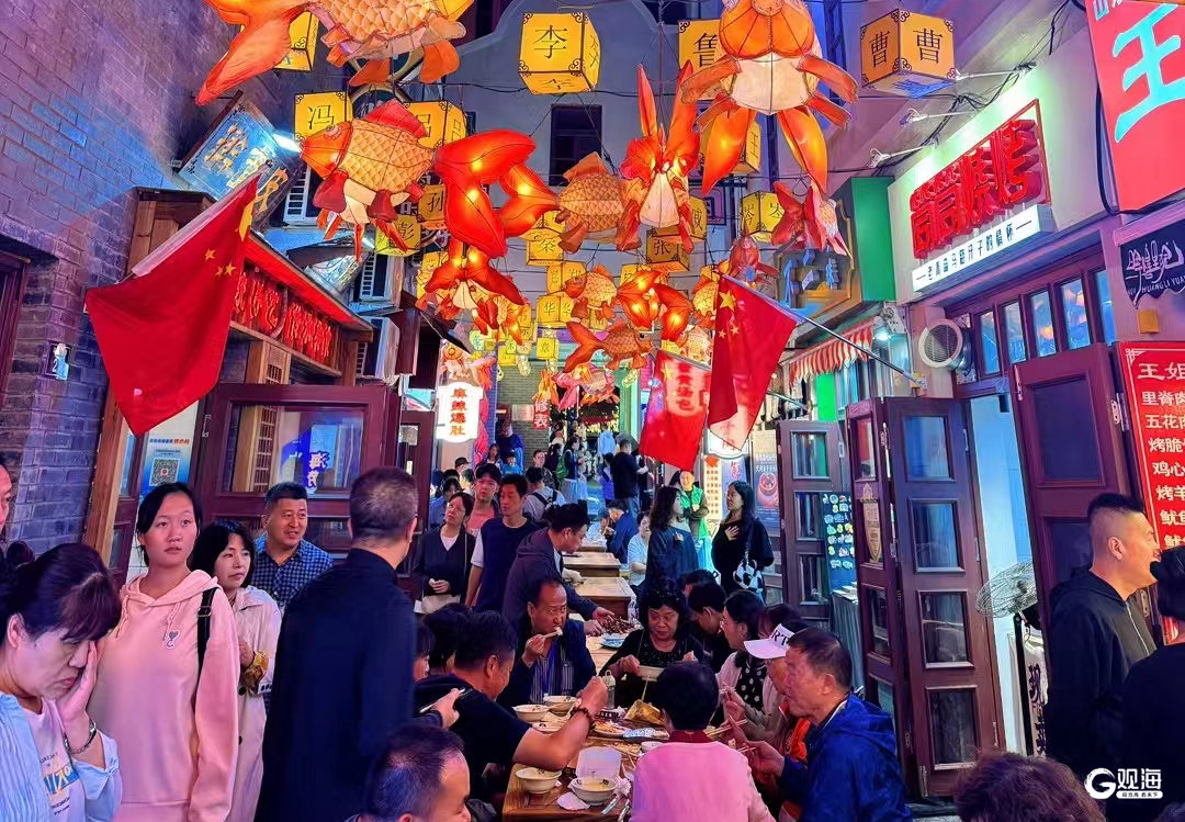 青岛日报社/观海新闻10月7日讯 每当夜幕降临,华灯初上,市南区的中山路历史城区便开始了新一轮“喧闹”。国庆假期,不少游客选择来到历史城区打卡“上街里夜生活”,品美食、逛夜景、观夜演,尽情享受惬意的假期生活。