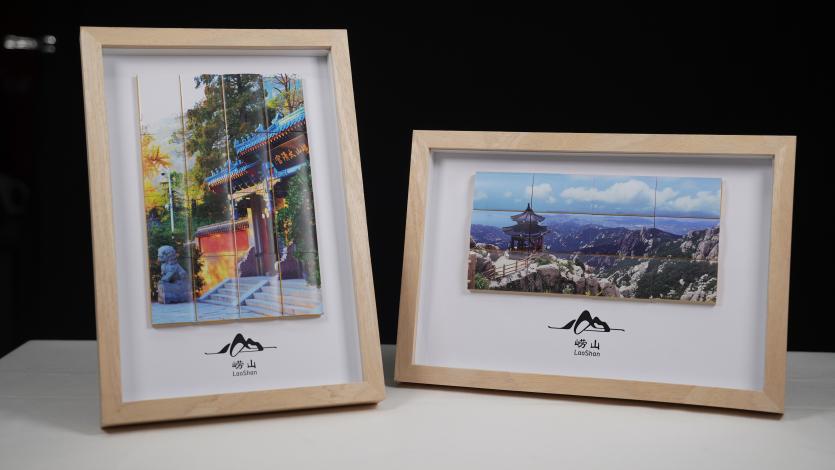 设计理念:“崂山剪纸摆件”系列文创作品融合了扎染、剪纸和国粹书法三种传统非遗技艺,将崂山的美景和水墨般的扎染底色巧妙融合,由崂山当地三位作者联合创作出具有崂山特色的摆件文创,作品具有很强的艺术性与观赏性。