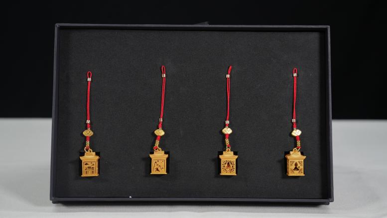 设计理念:“崂山凝香”挂坠是以崂山的地域文化为背景而设计的一款文创产品,在设计过程中融合了崂山非遗——冷凝香与崂山剪纸文化,图案上选择了四个具有代表性的崂山元素——太清宫、寿字峰、道文化和道教武术,根据冷凝香的主气味搭配相应的花朵图案,以达到香气与器的契合。