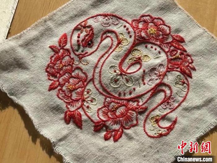 “蛇代表智慧和神秘,牡丹代表富贵和美丽,表达新春祝福。”在王雪敏看来,洪合刺绣飞针走线中绣的是生活,自古以来,不同主题刺绣,抒发着劳动人民对美好生活的向往。