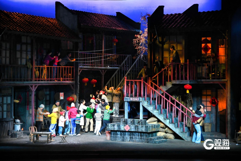 青岛日报社/观海新闻11月25日讯 “初八二十三,海水两头干,挖蛤蜊去喽”……伴随着一声吆喝,邻居们开始了一天的生活:排队上茅房、借粮票换鸡蛋、公共水龙头洗菜,舞台上满是百年老里院的烟火气息。11月25日晚间,《烟火人间》荣获第十八届“文华剧目奖”(原文华大奖)汇报演出在青岛大剧院歌剧厅举行。载誉归来的青岛市话剧院主创团队把这部获奖佳作搬上青岛舞台,与岛城观众一起回望上世纪改革开放年代,在市井生活的背景下感受普通人相互扶持、彼此守望的温暖生活。市话剧院院长傅维表示,“我们这部戏主打的是‘舞台上的烟火气’,就是要写人民、写老百姓,要是从生活中来、走到人民当中去。正如一位观众所说:从《烟火人间》里看到了亲情、友情、爱情、邻里情,各种情感像交响乐一样交织在一起,很温暖,这也正是今天我们的舞台所需要的。”
