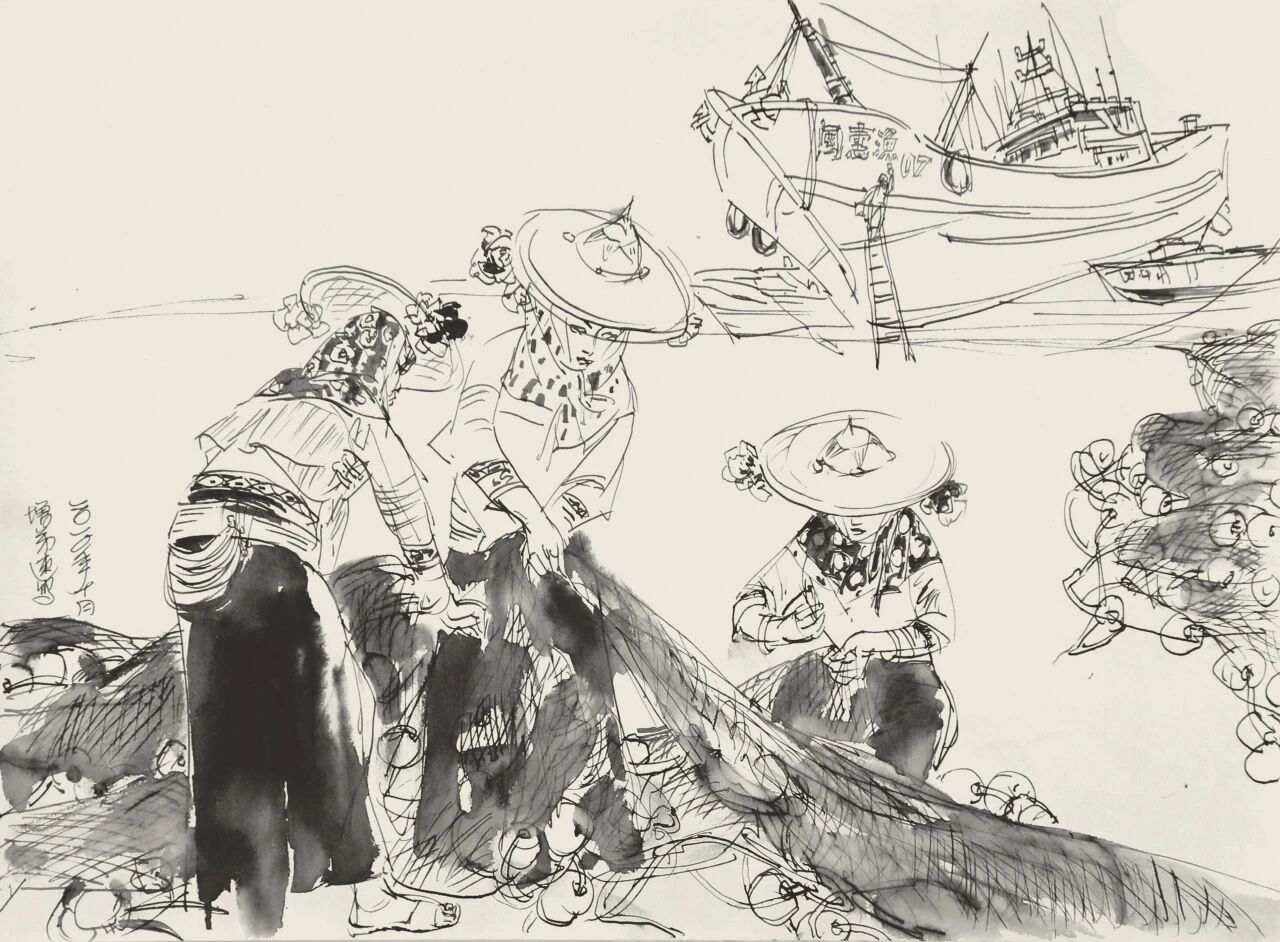 他的人物速写作品,用笔简洁线条流畅,善于捕捉瞬间的动态和眼神,以快闪式的手法,记录着所见所闻的动人故事。所以充满了烟火气和亲切感,让观者能够感受到生活的真实与美好,同时可以欣赏到速写这种艺术的美。