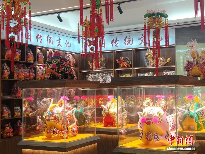 10日,走进工坊展厅,琳琅满目的布艺手工制品有序陈列。“潞王虎”摆件由红金丝线交织纹样,粉色绒球点缀眉眼,威严中透着几分可爱;展柜中端坐的布老虎,头冠卷云纹在亮片映衬下闪烁;挂件中的迷你布虎搭配烫金姓氏牌,流苏轻摇,满含传统韵味。这些作品均由工坊女工精心制作,展现非遗技艺在新时代的活力。