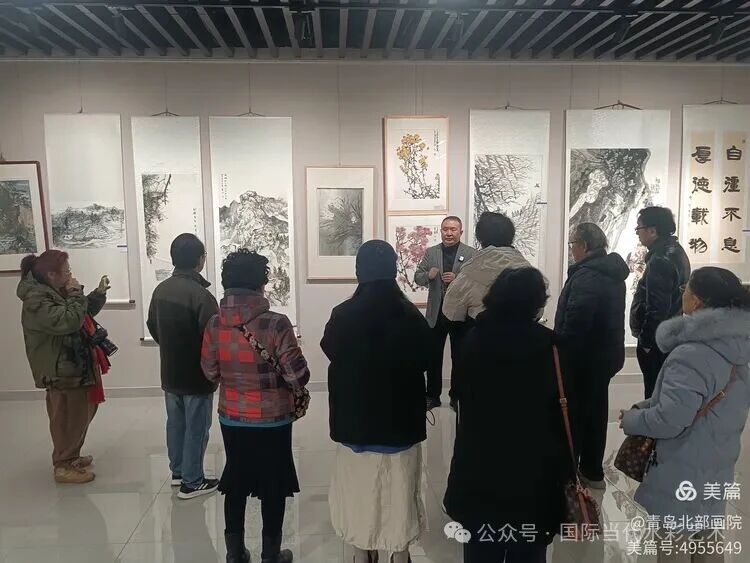 展览还特别设置了“艺海泛舟”美术青岛专访展区,对2025年由青岛市美协指导,青岛北部画院主办的八期专访的老一辈艺术家刘世骏先生、张白波先生、邱振亮先生、刘文泉先生、姜振萍先生、蓝立克先生、袁玉堂先生及孙增弟先生的作品进行主题式的集中展示。青岛北部画院公众号进行了全程直播,在线观看的近千人。