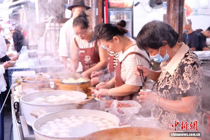 数据显示,全长700多米的早茶街,集聚了180余家经营门店,能吃到300多种特色小吃。“酱、酒、染”三缸和“豆腐、糖、油、炒、磨”五坊等传统业态也依然兴旺。