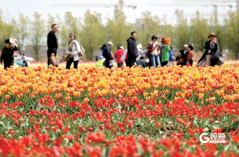 青岛胶东国际机场旁,成片的郁金香争相盛放。王雷 摄