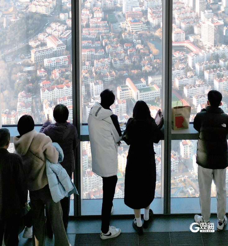 市民游客在云上海天俯瞰青岛。王雷 摄